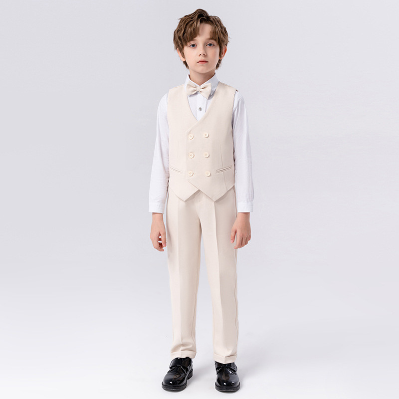 Costum baieti Leon 2-15 ani crem sacou vesta pantaloni papion