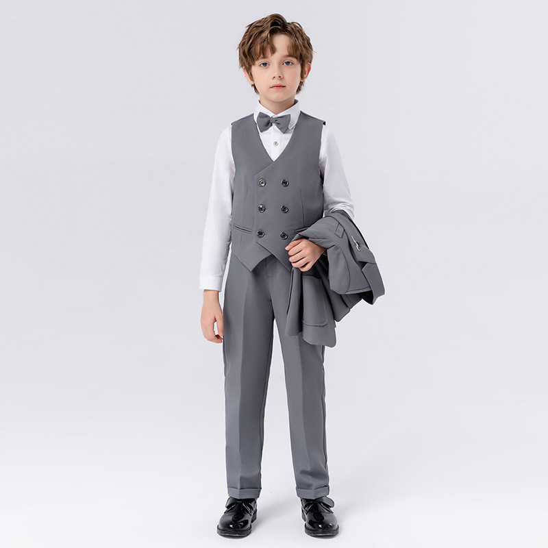 Costum baieti Leon 2-15 ani gri sacou vesta pantaloni papion
