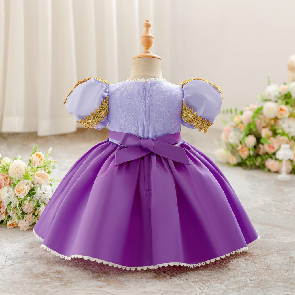 Rochie elegantă tip prințesă pentru fetițe 0–4 ani – model Deea, roz cu mov și albastru