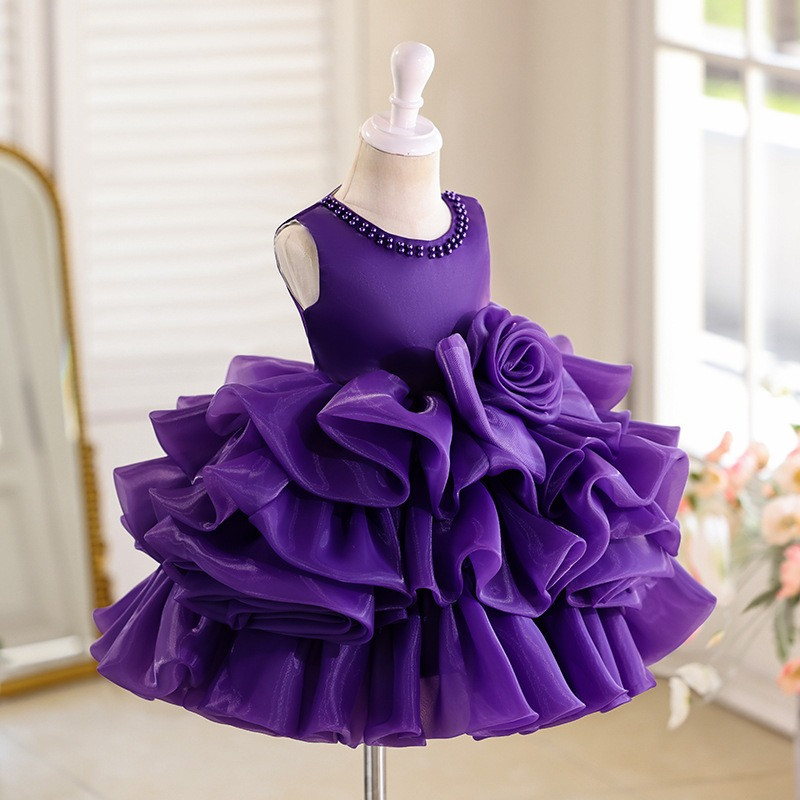 Descoperă rochița elegantă pentru fetițe, perfectă pentru ocazii speciale și evenimente importante. Această rochie mov, fără mâneci, cu volane delicate și trandafiri ornamentali, oferă un look rafinat și plin de feminitate pentru micuța ta. Ideală pentru fetițe cu vârste între 3 și 10 ani, această rochiță este proiectată pentru a combina confortul cu eleganța.