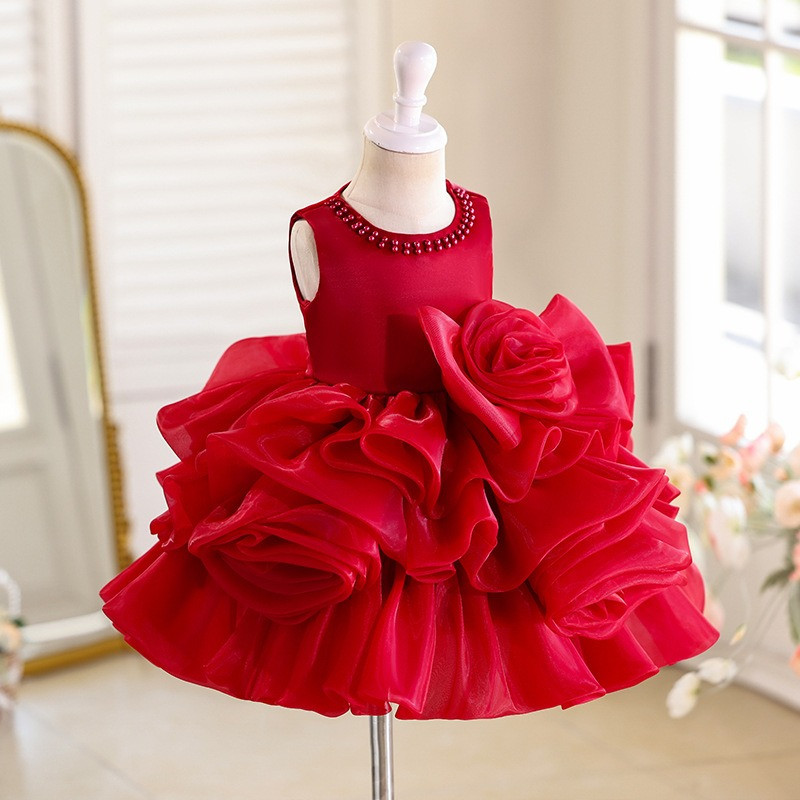 Descoperă rochița roșie pentru fetițe 3–10 ani, o piesă vestimentară elegantă, creată special pentru evenimentele importante din viața copilului tău. Cu un design rafinat, volane ample și aplicații delicate cu trandafiri, această rochie până la genunchi îmbină armonios stilul festiv cu confortul necesar unei zile pline de emoții și bucurie.