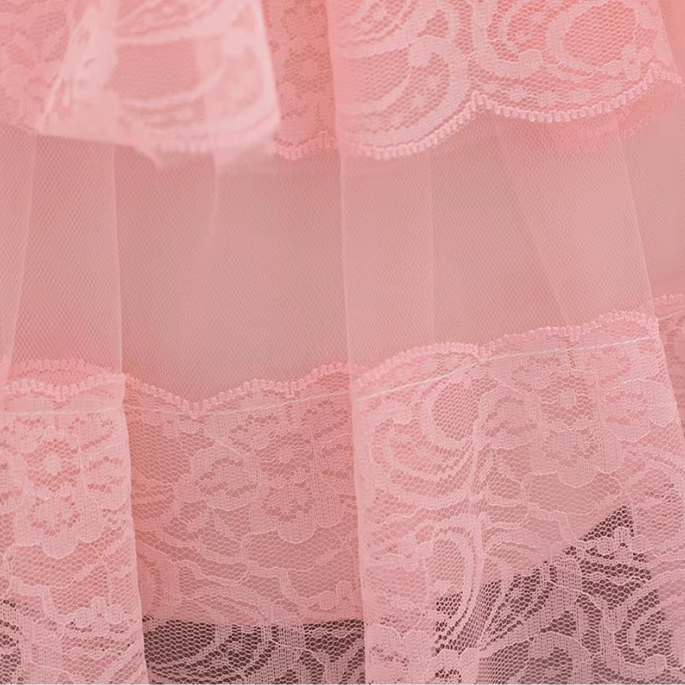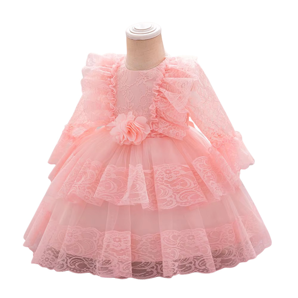 Îți dorești o rochie elegantă, confortabilă și versatilă pentru fetița ta? Alege modelul Amara, roz deschis, cu dantelă și mânecă lungă, pentru un look delicat și rafinat la fiecare ocazie specială!