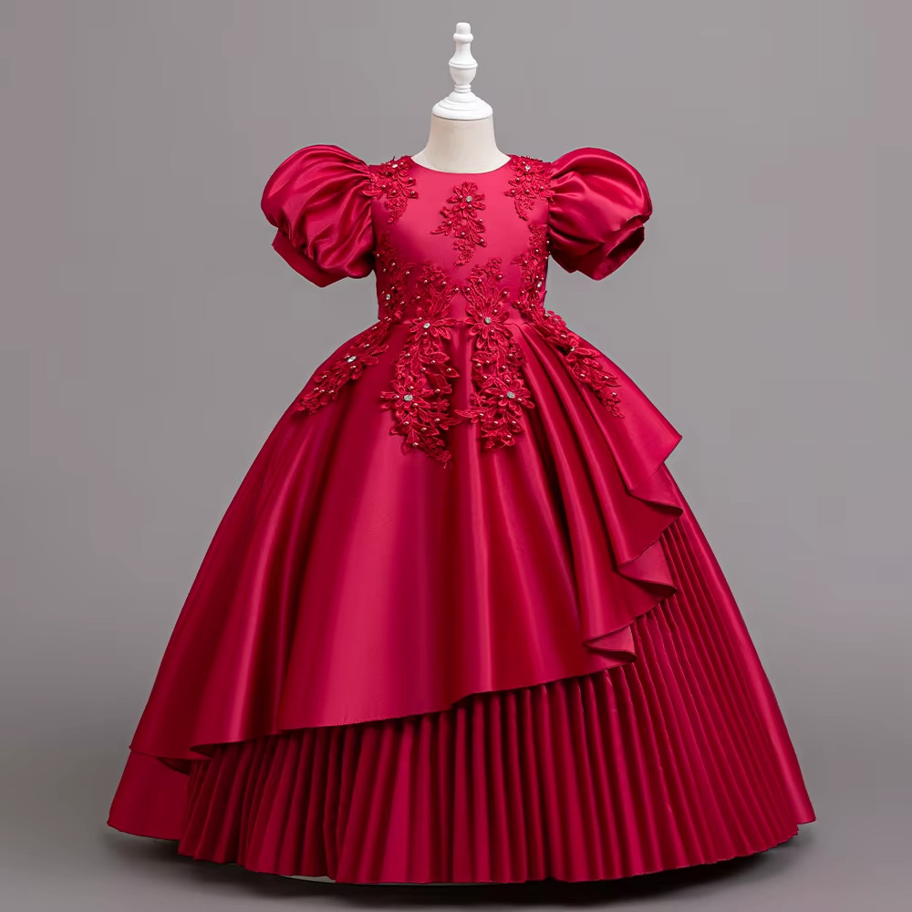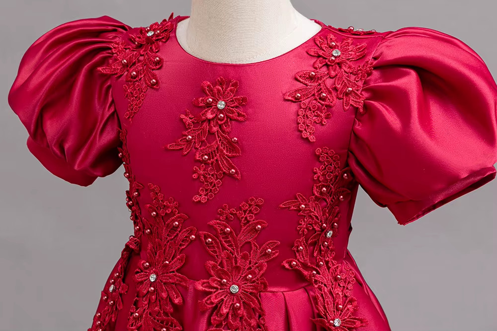 Rochiță elegantă fetițe bordo, tafta cu broderie, 3-12 ani – ideală pentru evenimente speciale