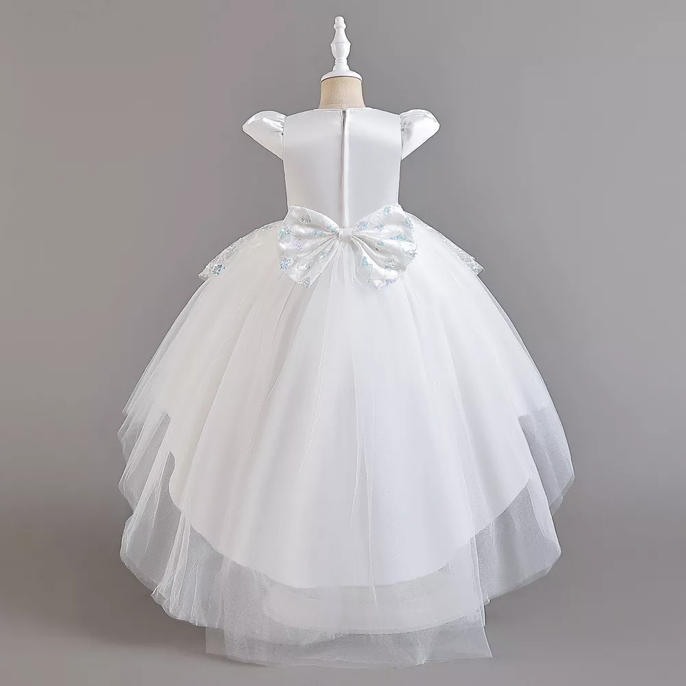 Oferă-i micuței tale o apariție de neuitat la orice eveniment cu rochița albă elegantă pentru fetițe Emidale. Creată pentru vârstele 3-12 ani, această rochie este alegerea perfectă pentru aniversări, nunți, botezuri, serbări, banchete, baluri sau petreceri speciale. Designul rafinat, trena spectaculoasă și detaliile deosebite transformă fiecare moment într-o amintire prețioasă.