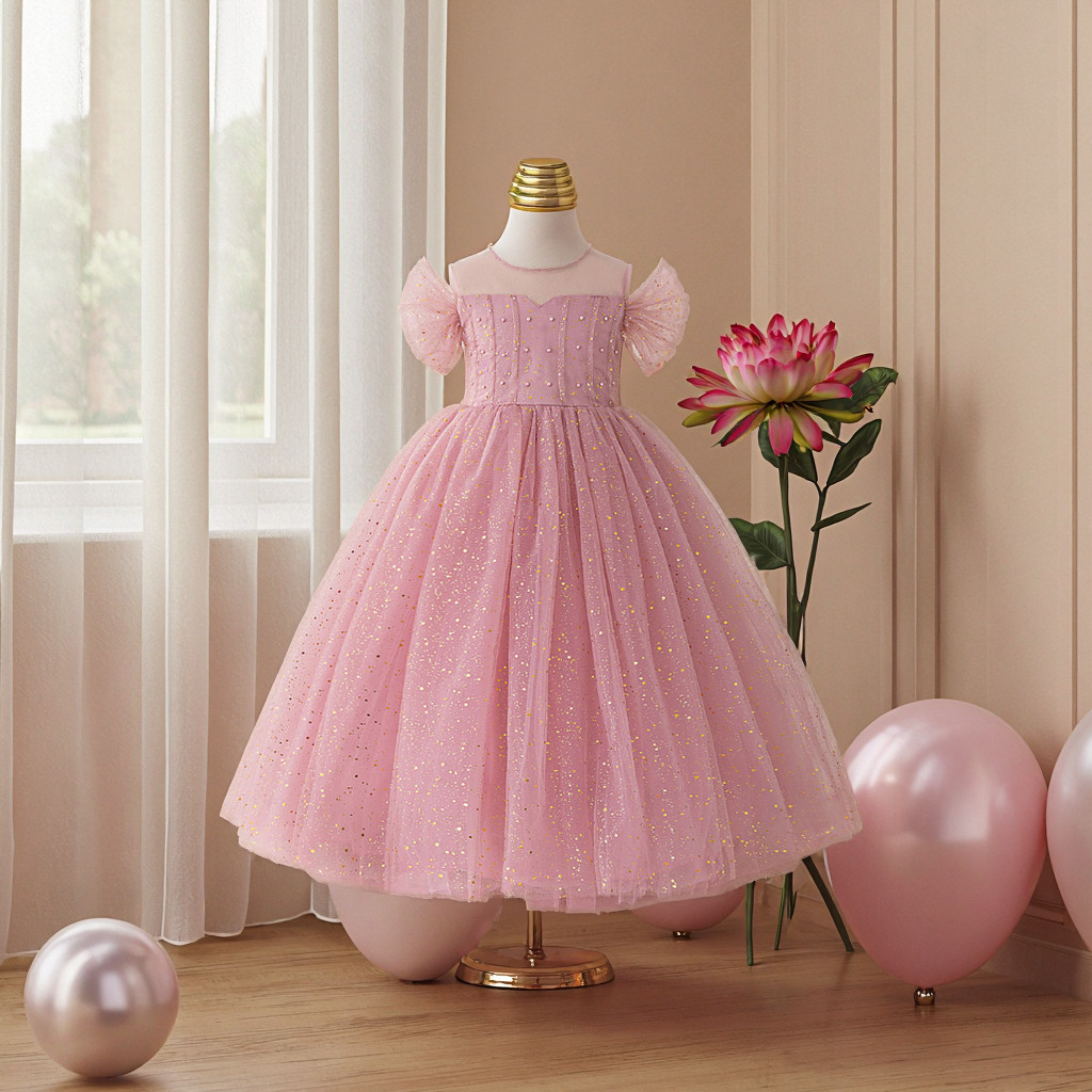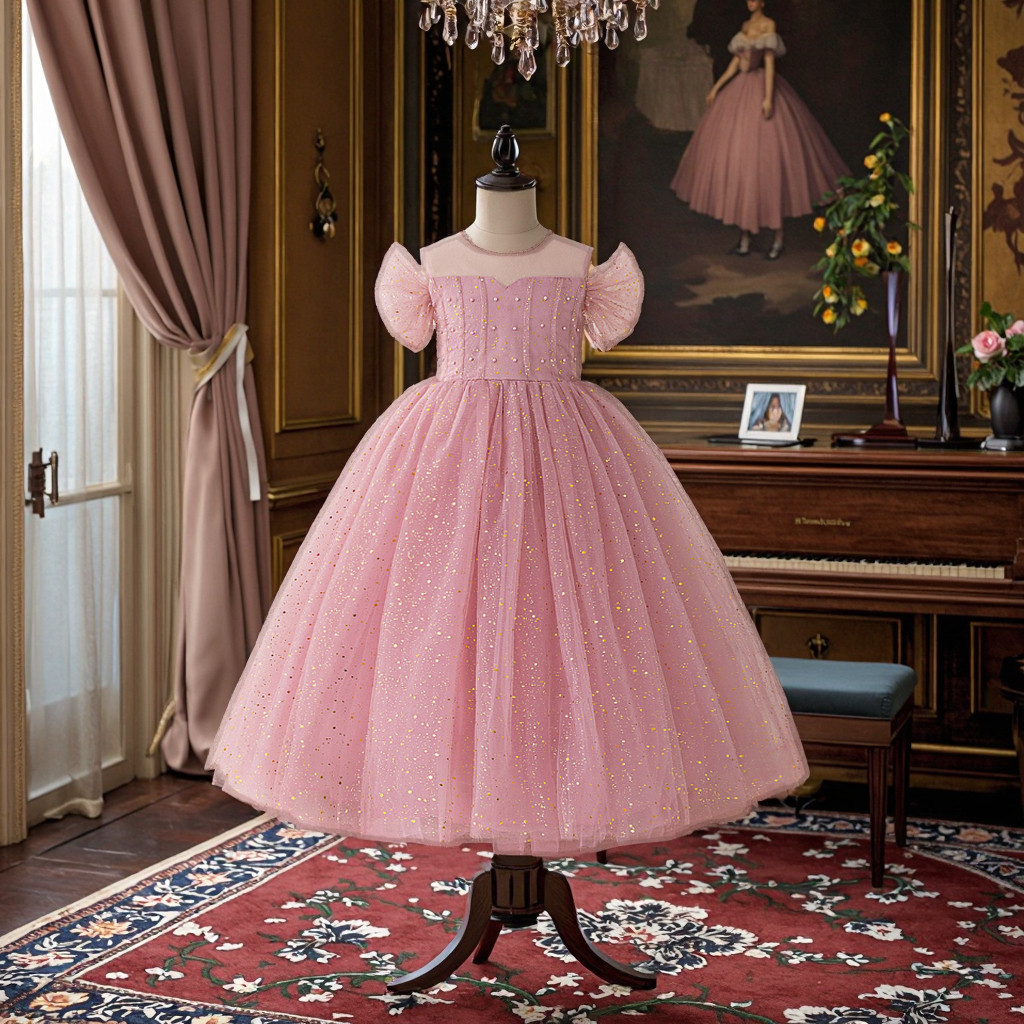 Rochița este dotată cu fermoar ascuns la spate, ceea ce facilitează îmbrăcarea rapidă și menține estetica impecabilă a produsului. Croiala este gândită astfel încât copilul să aibă libertate de mișcare în timpul dansului, defilării sau jocului, transformând rochia într-o alegere inspirată pentru botezuri, nunți, seri de gală, serbări școlare, banchete, aniversări sau concursuri de talente, unde aspectul scenic este esențial.