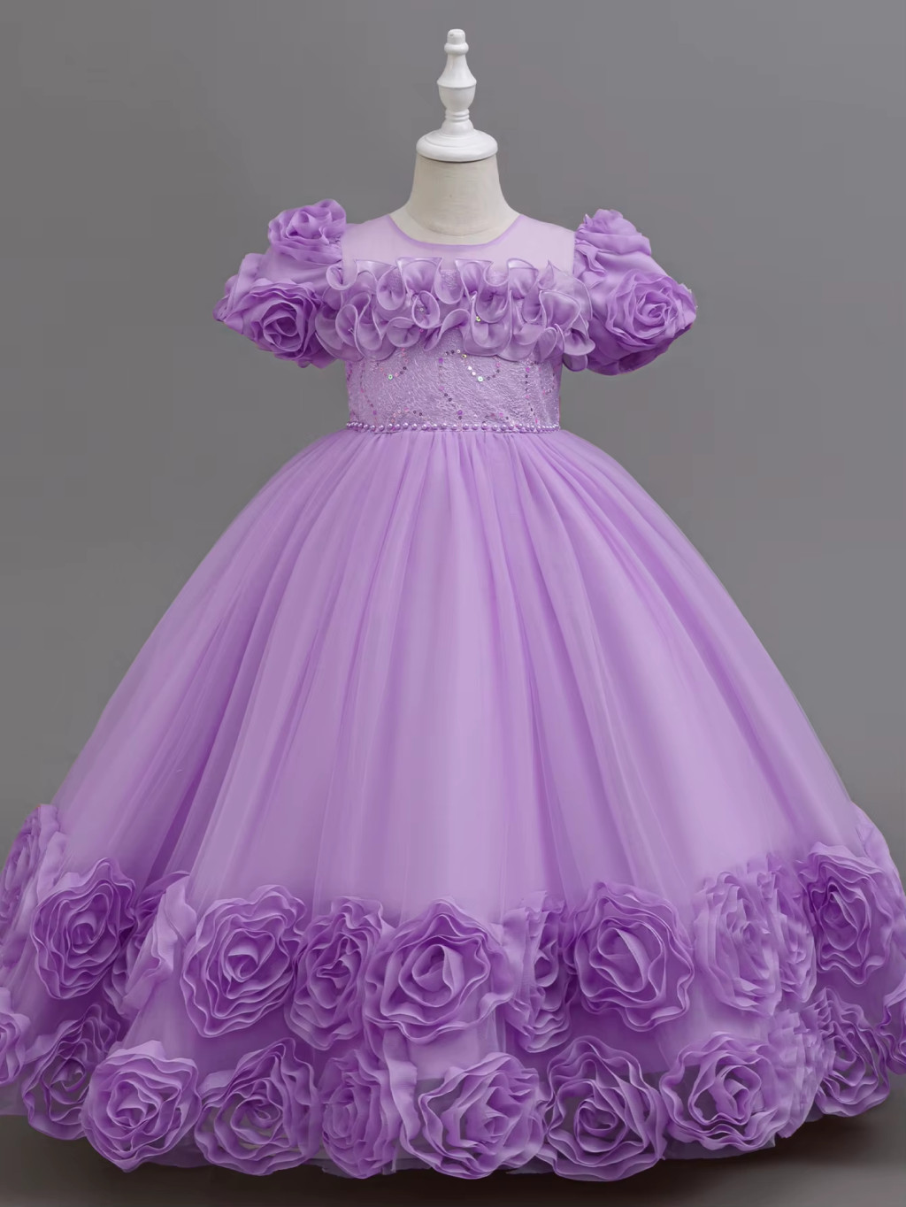 Rochița elegantă pentru fetițe Miriam, într-o nuanță rafinată de mov, este alegerea ideală pentru părinții care își doresc o ținută deosebită pentru micuțele lor. Creată special pentru fete cu vârste cuprinse între 3 și 12 ani, această rochie lungă îmbină eleganța clasică cu detalii moderne, oferind o apariție spectaculoasă la orice eveniment important.