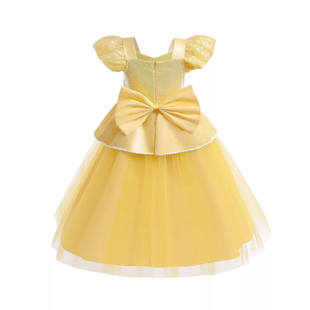 Rochiță elegantă galbenă tip prințesă pentru fetițe 3–10 ani – inspirată din rochițele Prințesei Belle