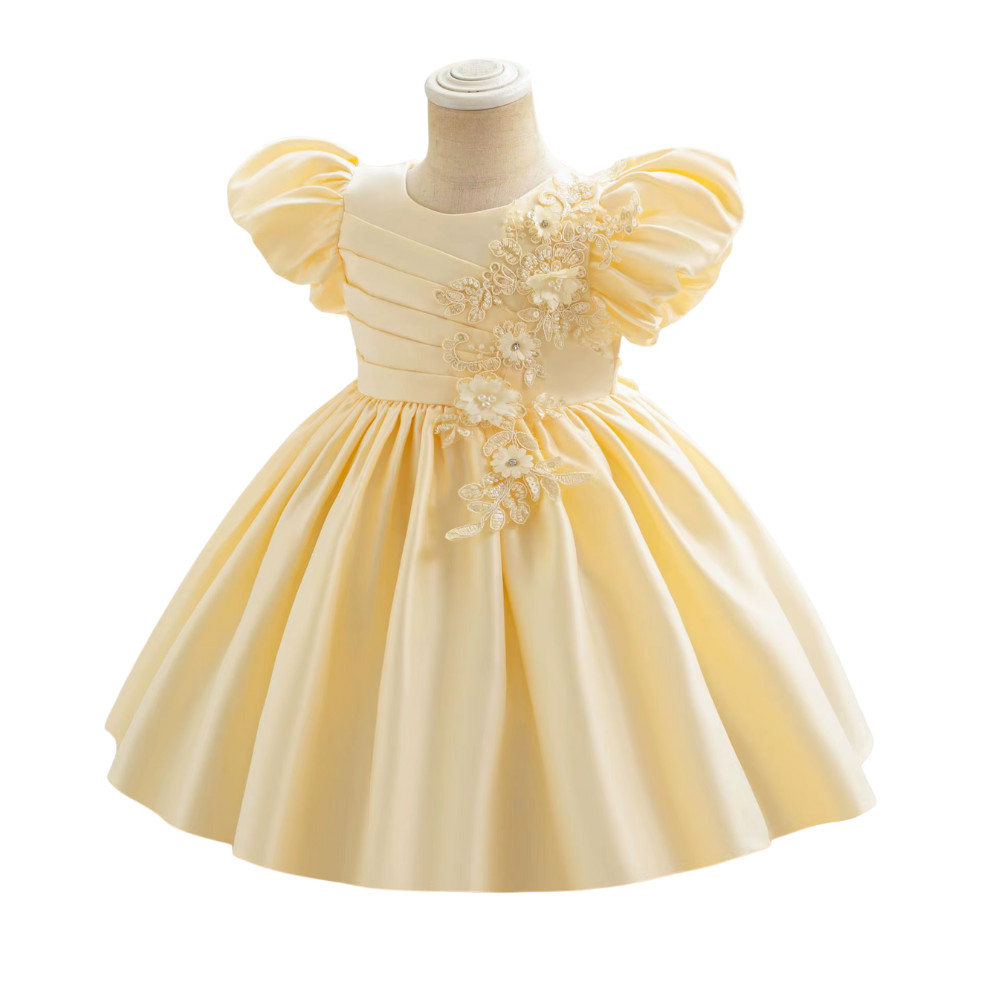 Această rochiță elegantă crem pentru fetițe cu vârste între 1 și 7 ani este alegerea perfectă pentru momente speciale și evenimente importante. Designul său rafinat, împreună cu detaliile atent lucrate, oferă un aspect delicat și sofisticat, potrivit pentru orice ocazie festivă.