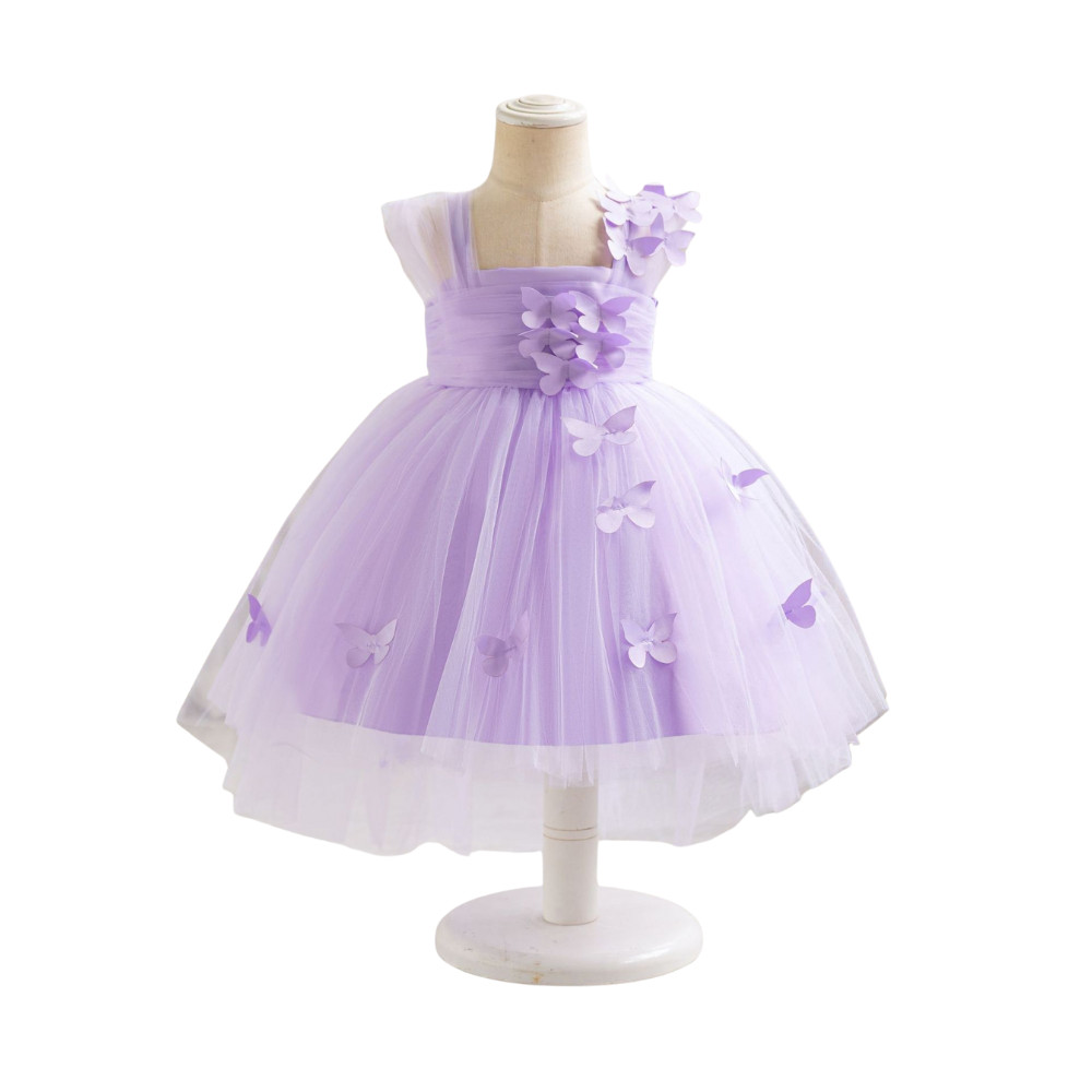 Descoperă o rochiță de poveste, creată special pentru micile prințese cu vârsta între 0 și 4 ani. Această rochie mov lila, decorată delicat cu fluturi și confecționată din straturi vaporoase de tulle, este alegerea perfectă pentru fetițele care urmează să participe la un eveniment special.