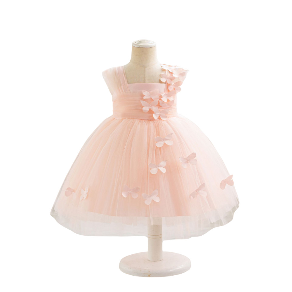 Rochița este realizată din tulle de înaltă calitate, într-o nuanță delicată de roz pudră. Aplicațiile sub formă de fluturi oferă un aspect jucăuș și rafinat, în timp ce trena adaugă eleganță și spectaculozitate.