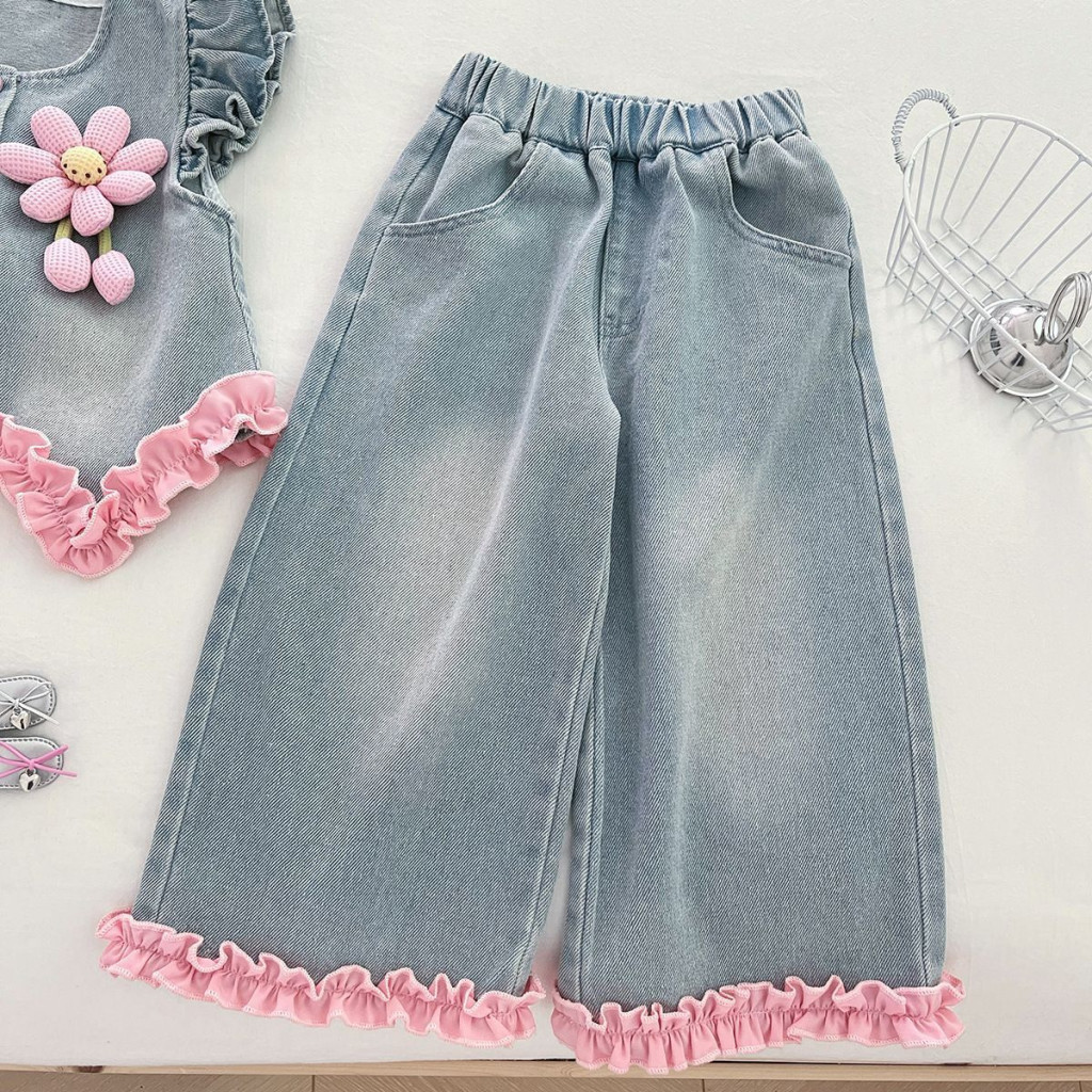 Pantalonii din denim albastru sunt creați special pentru confortul copiilor. Croiala lejeră și modernă permite mișcare naturală, iar elasticul din talie asigură o potrivire ușoară și rapidă. Detaliile roz integrate în design completează perfect vesta și oferă setului un aspect unitar, modern și stilat.
